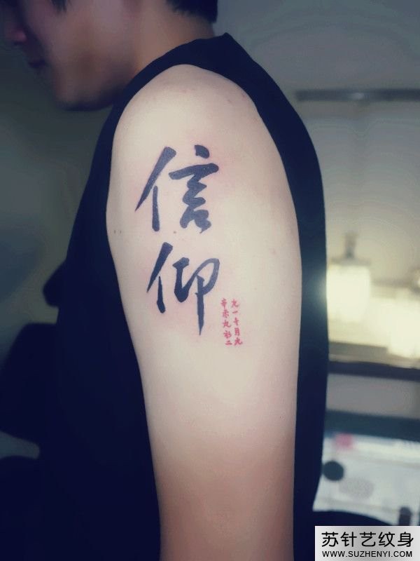 肩膀字体纹身图案上海越狱纹身店作品_汉字纹身图案大全_纹身图吧