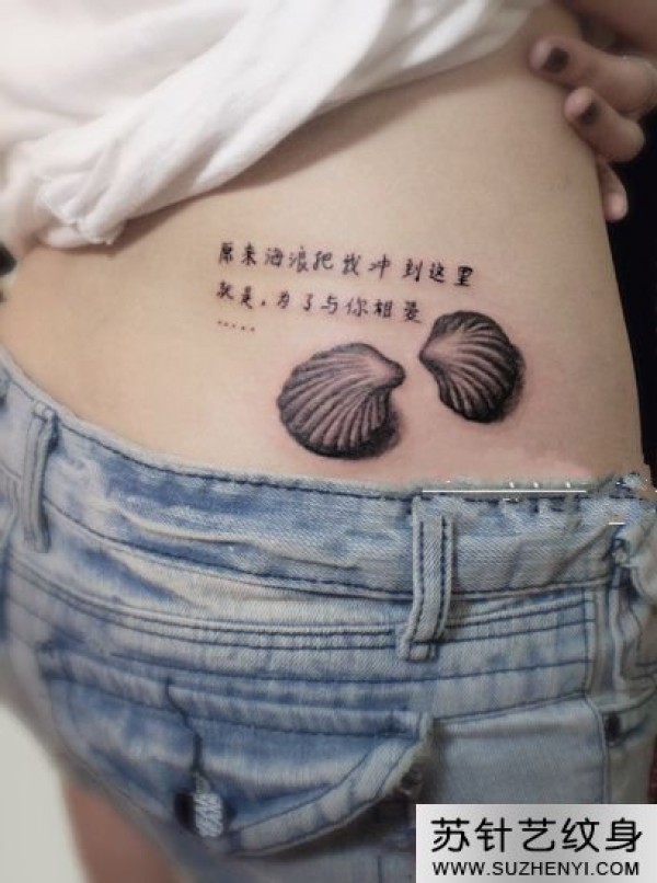 贝壳汉字腰部纹身_汉字纹身图案大全_纹身图吧
