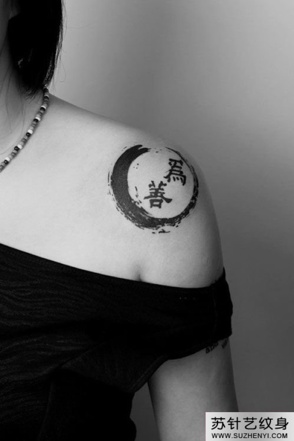 黑白汉字肩部纹身图片_汉字纹身图案大全_纹身图吧