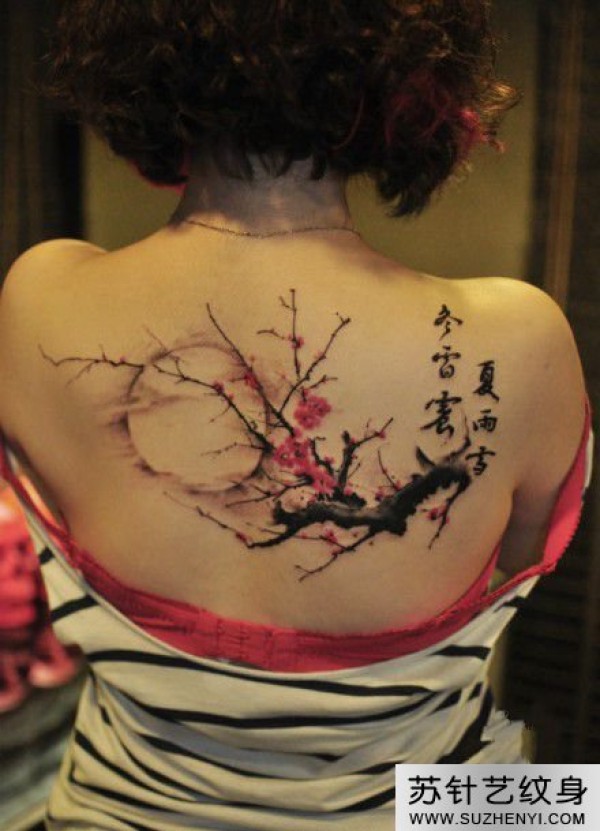 最新中国精美梅花汉字女生背上纹身_汉字纹身图案大全_纹身图吧