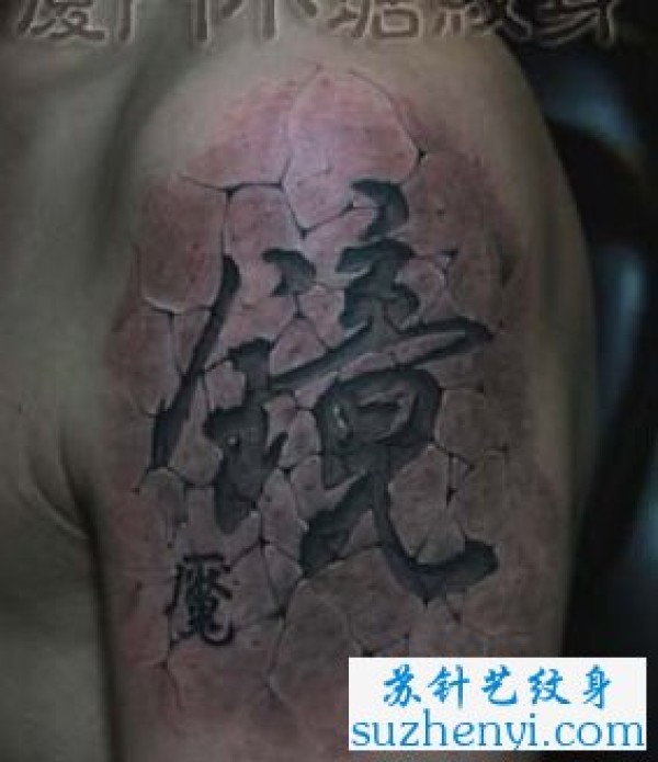 肩膀字体纹身图案上海越狱纹身店作品_汉字纹身图案大全_纹身图吧