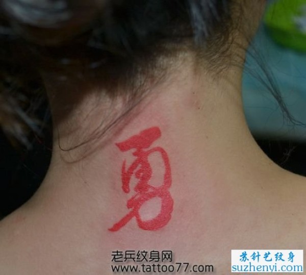 颈部彩色汉字纹身图案_汉字纹身图案大全_纹身图吧