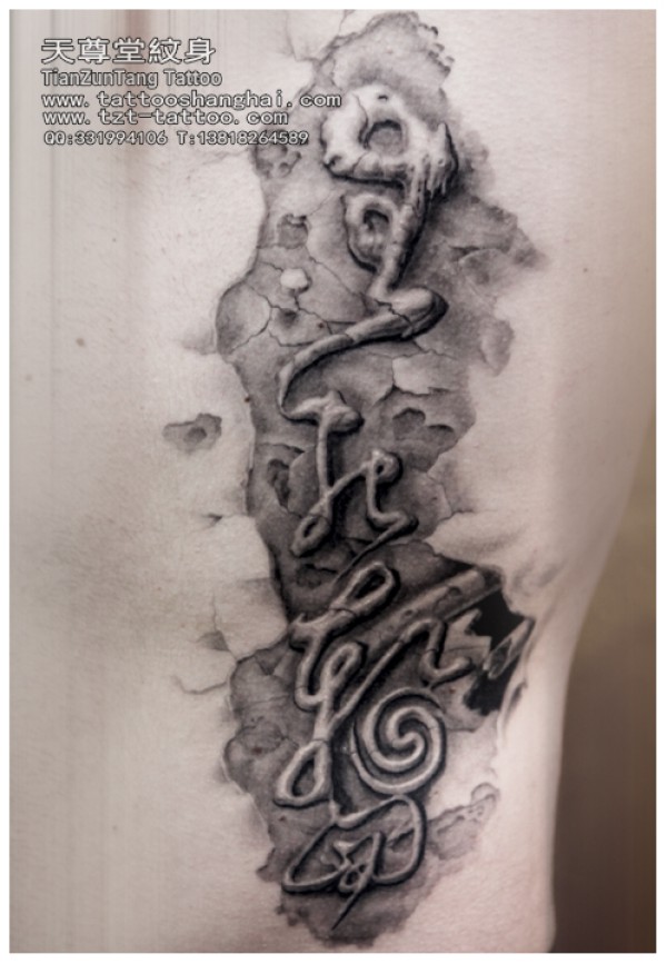 腰部哥特字体纹身图案上海越狱纹身店作品_汉字纹身图案大全_纹身图吧