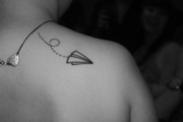 青春女孩肩部清新纸飞机纹身图_肩部纹身图案大全_纹身图吧