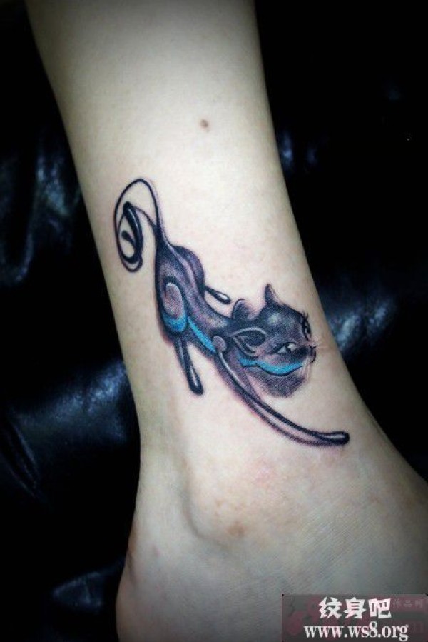 魅惑波斯猫脚踝纹身图案_脚部纹身图案大全_纹身图吧