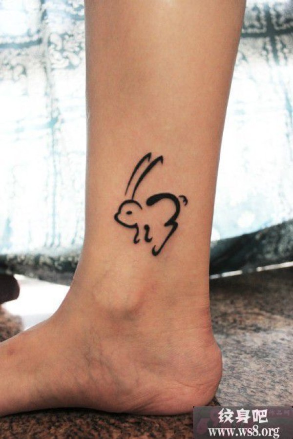简洁线条兔子创意脚踝纹身图案_脚部纹身图案大全_纹身图吧