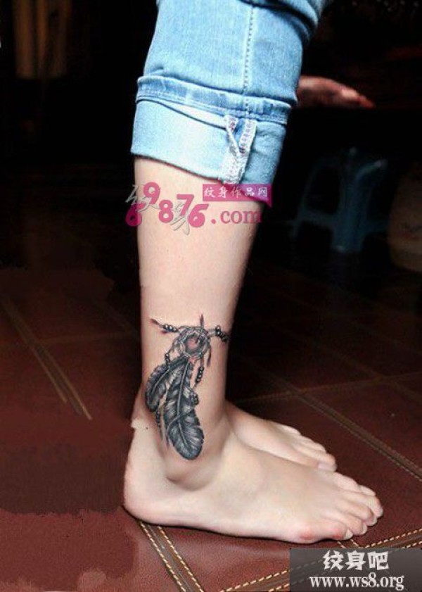 印第安羽毛创意脚踝纹身图案_脚部纹身图案大全_纹身图吧