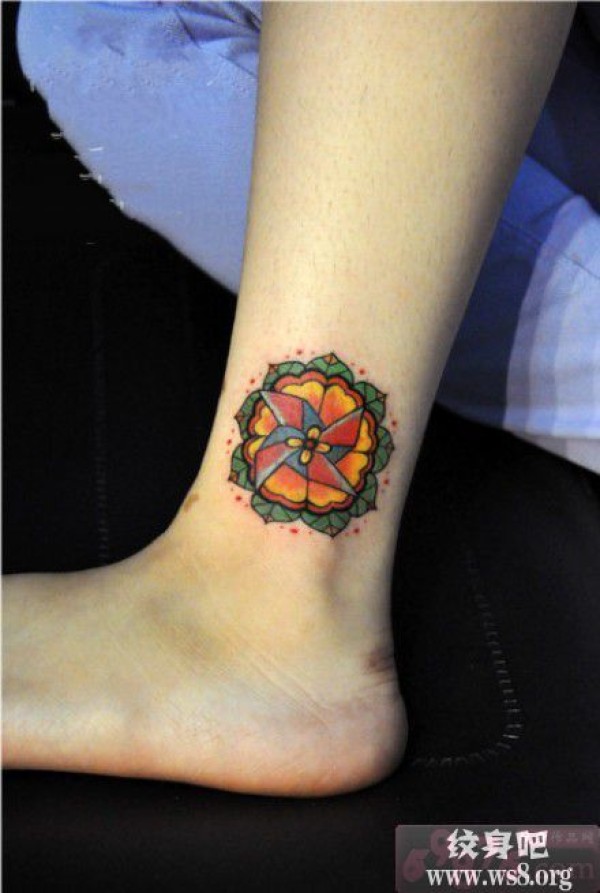 彩虹风车脚踝时尚纹身图案_脚部纹身图案大全_纹身图吧
