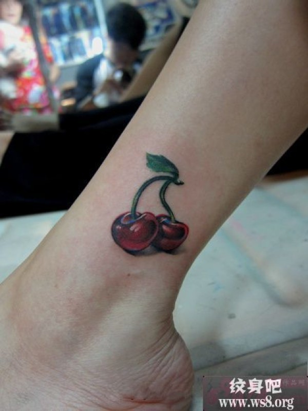 小樱桃时尚脚踝纹身图案_脚部纹身图案大全_纹身图吧