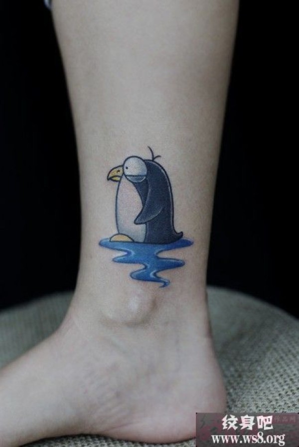 可爱萌企鹅脚踝纹身图案_脚部纹身图案大全_纹身图吧
