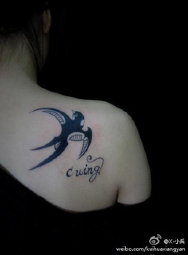女孩肩部漂亮飞鸟刺青_肩部纹身图案大全_纹身图吧