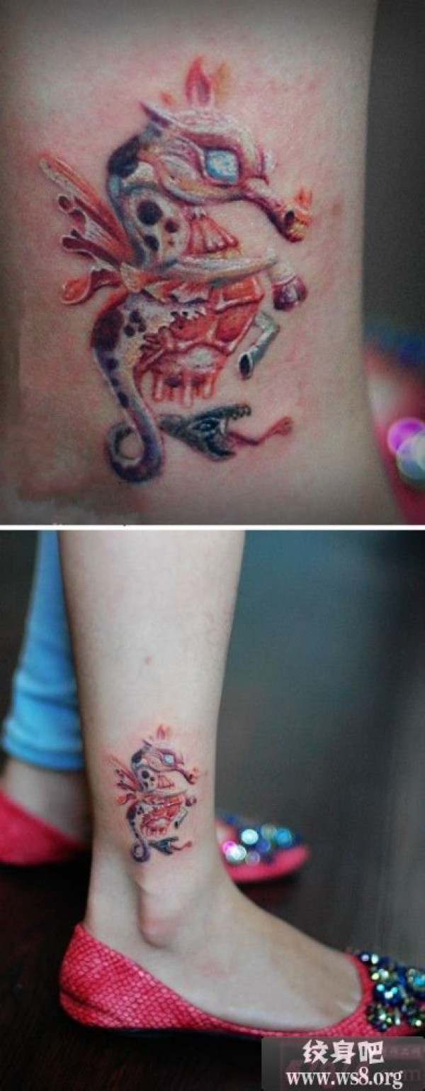 创意抽象小海马脚踝纹身图案_脚部纹身图案大全_纹身图吧