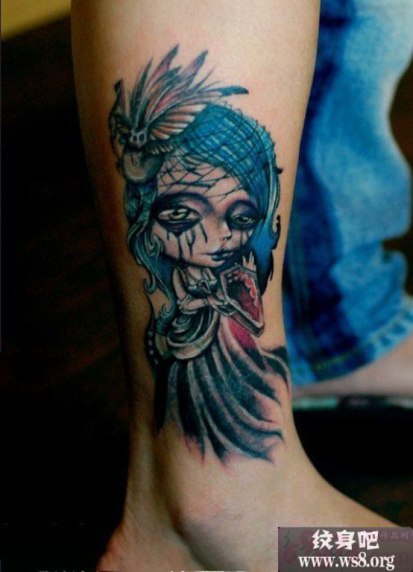 创意鬼魅新娘脚踝纹身图案_脚部纹身图案大全_纹身图吧