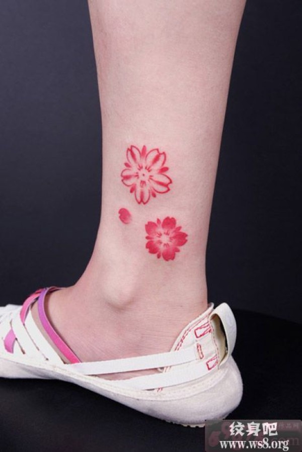清新粉色小樱花脚踝纹身图案_脚部纹身图案大全_纹身图吧