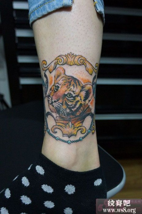 可爱萌老虎脚踝纹身图案_脚部纹身图案大全_纹身图吧