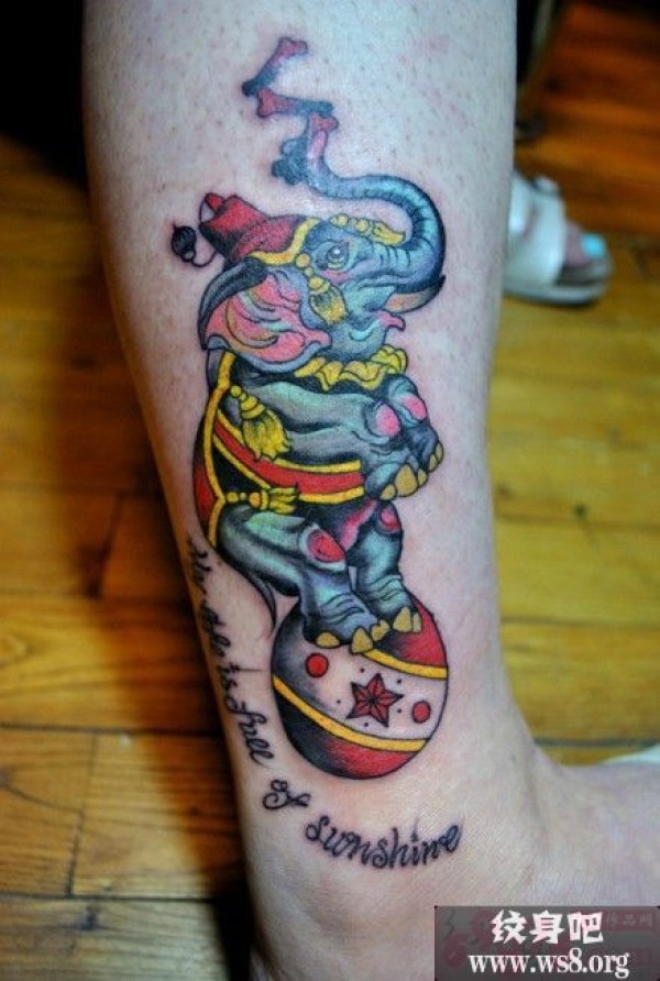 马戏团大象创意脚踝纹身图案_脚部纹身图案大全_纹身图吧