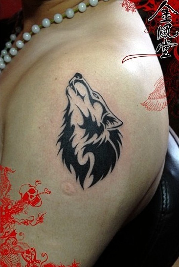 左肩上的仰望的狼头刺青_肩部纹身图案大全_纹身图吧