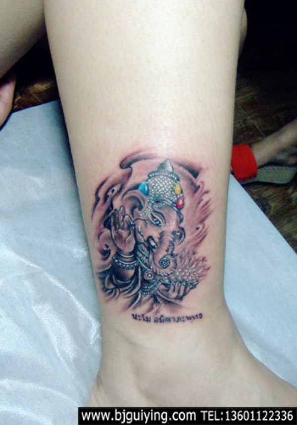 脚颈处的象神作品欣赏_脚部纹身图案大全_纹身图吧