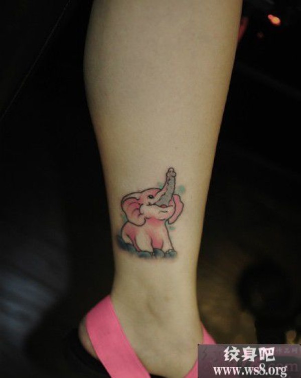 粉色可爱小象脚踝纹身图案_脚部纹身图案大全_纹身图吧