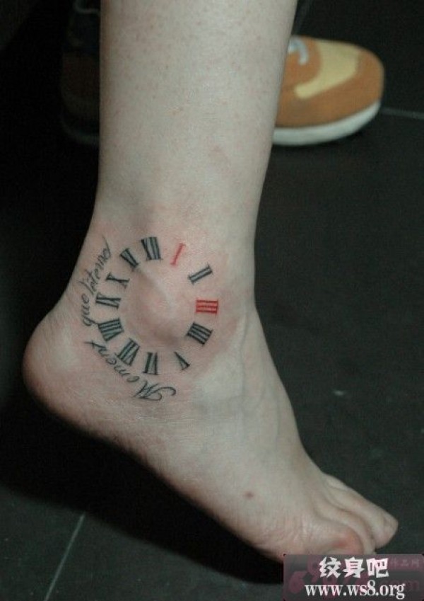 创意时钟脚踝纹身图案_脚部纹身图案大全_纹身图吧