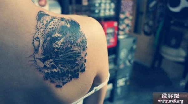 肩部霸气豹子头像刺青现场图案_肩部纹身图案大全_纹身图吧