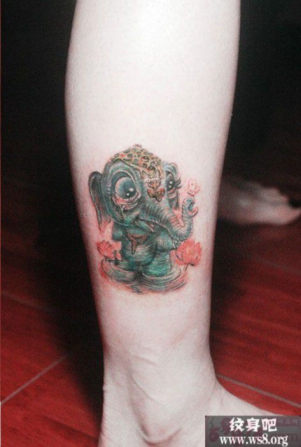 可爱小象清新脚踝纹身图案_脚部纹身图案大全_纹身图吧
