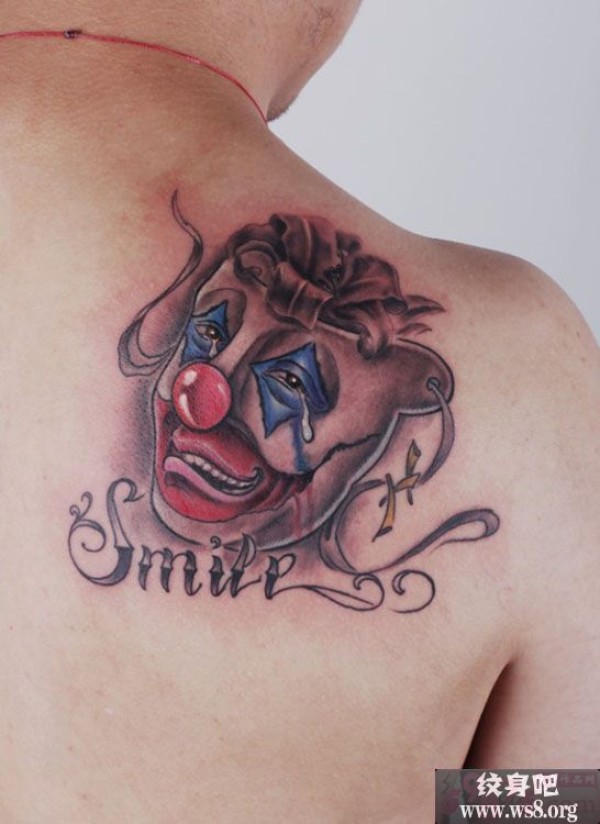 落泪小丑肩部纹身图案_肩部纹身图案大全_纹身图吧