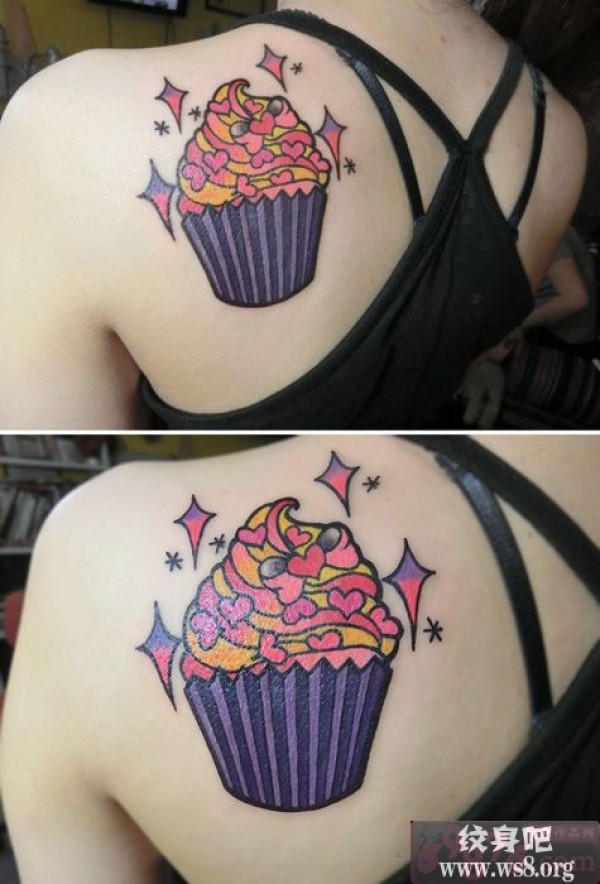 可爱小蛋糕唯美肩部纹身图案_肩部纹身图案大全_纹身图吧