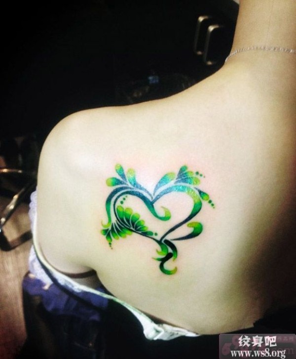创意碧绿海浪心肩部纹身图案_肩部纹身图案大全_纹身图吧