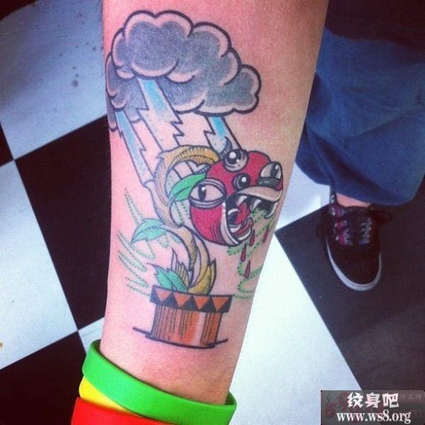 雷电下食人花创意脚踝纹身图案_脚部纹身图案大全_纹身图吧