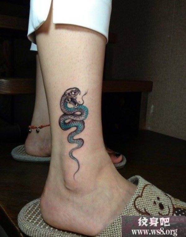 可爱小青蛇脚踝纹身图案_脚部纹身图案大全_纹身图吧