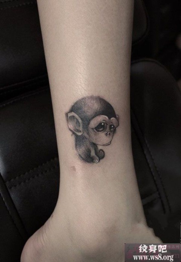 可爱萌小猴脚踝纹身图案_脚部纹身图案大全_纹身图吧