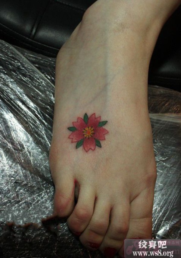 唯美樱花脚背纹身图案_脚部纹身图案大全_纹身图吧