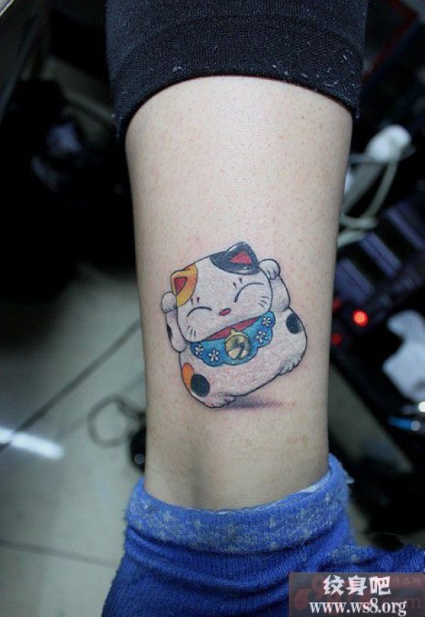 可爱小招财猫脚踝纹身图案_脚部纹身图案大全_纹身图吧