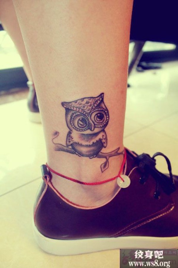 脚踝可爱猫头鹰图案图案_脚部纹身图案大全_纹身图吧