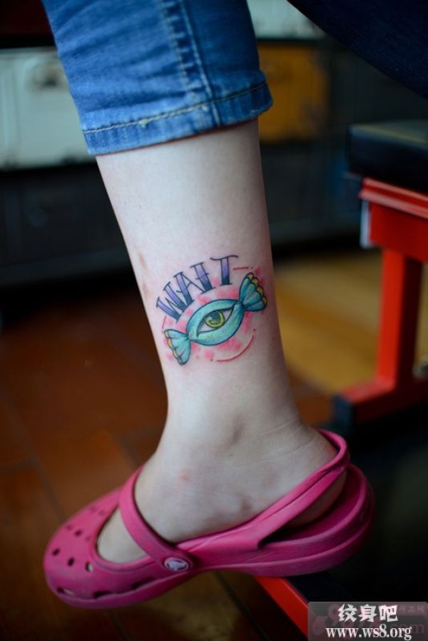 脚踝可爱糖果眼睛创意纹身图案_脚部纹身图案大全_纹身图吧
