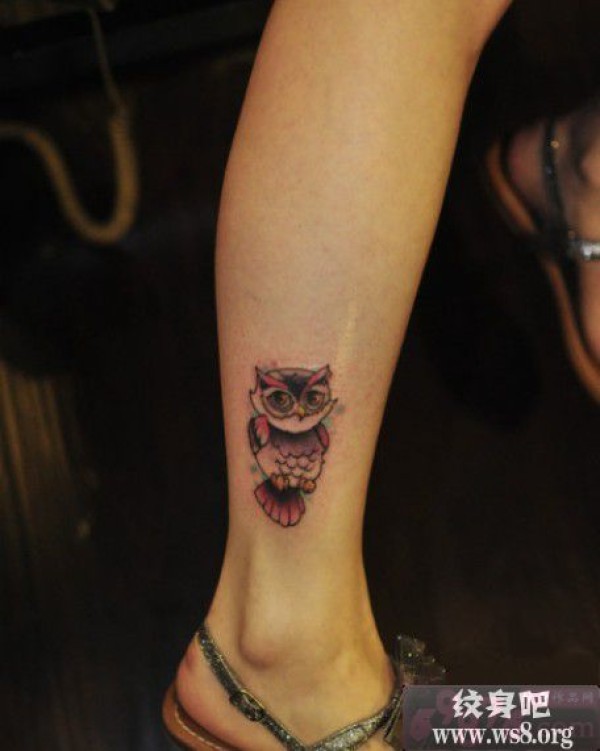 清新风格猫头鹰脚踝纹身图案_脚部纹身图案大全_纹身图吧