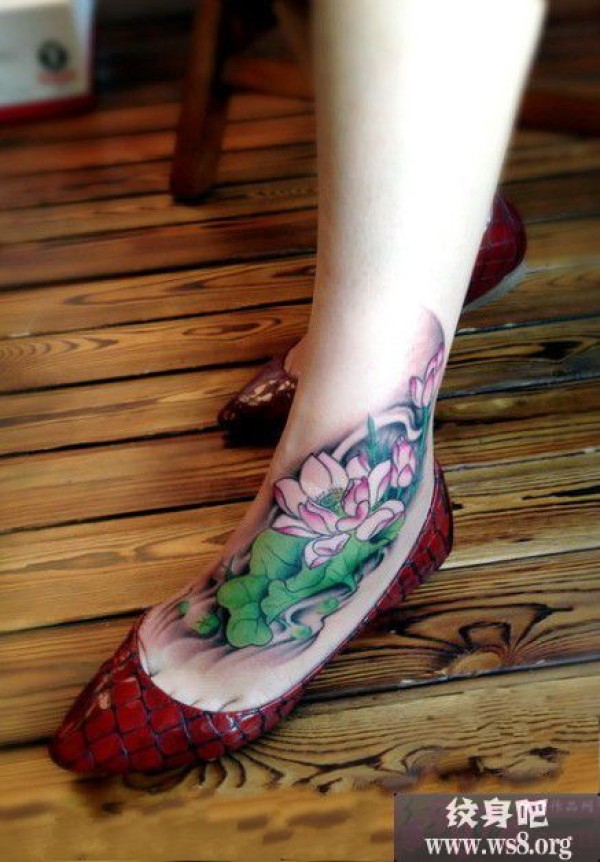 夏日美丽荷花脚背纹身图案_脚部纹身图案大全_纹身图吧