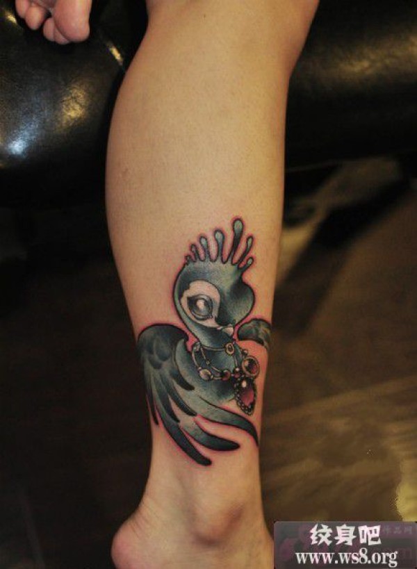 脚踝呆萌小孔雀纹身图案_脚部纹身图案大全_纹身图吧