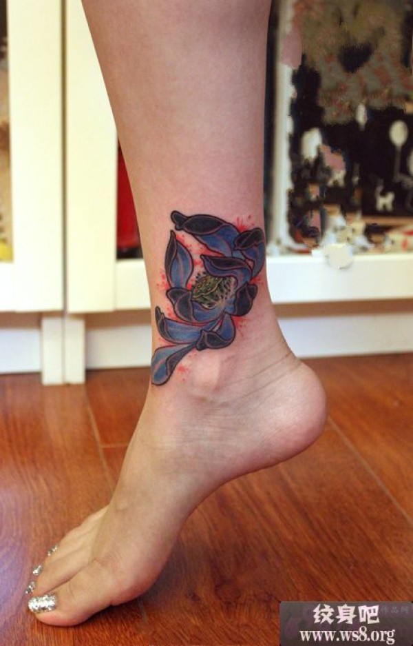 脚踝彩荷简约纹身图案_脚部纹身图案大全_纹身图吧