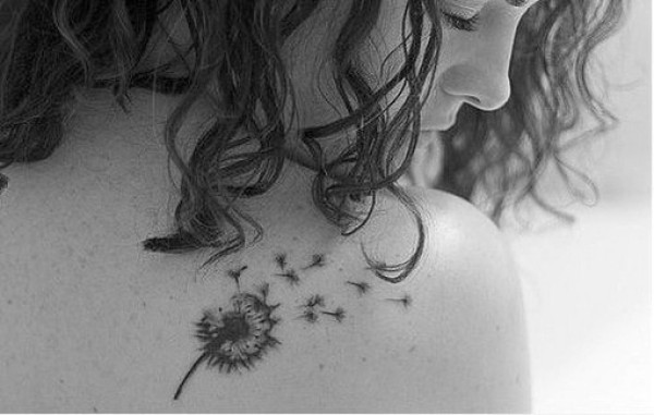 女性肩部蒲公英刺青_肩部纹身图案大全_纹身图吧