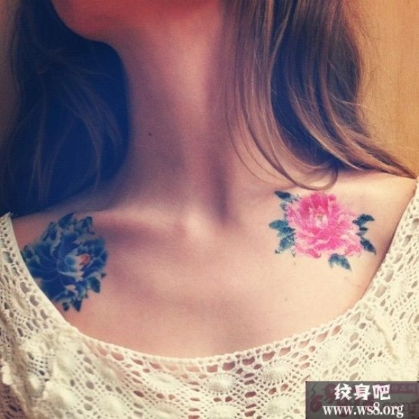 唯美肩部牡丹花纹身图案_肩部纹身图案大全_纹身图吧