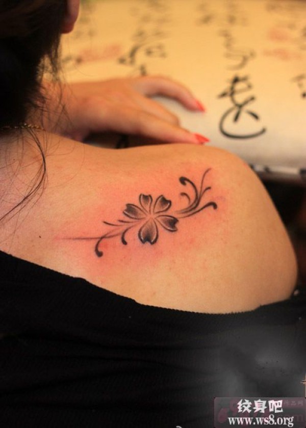 肩部四叶草清新纹身图案_肩部纹身图案大全_纹身图吧