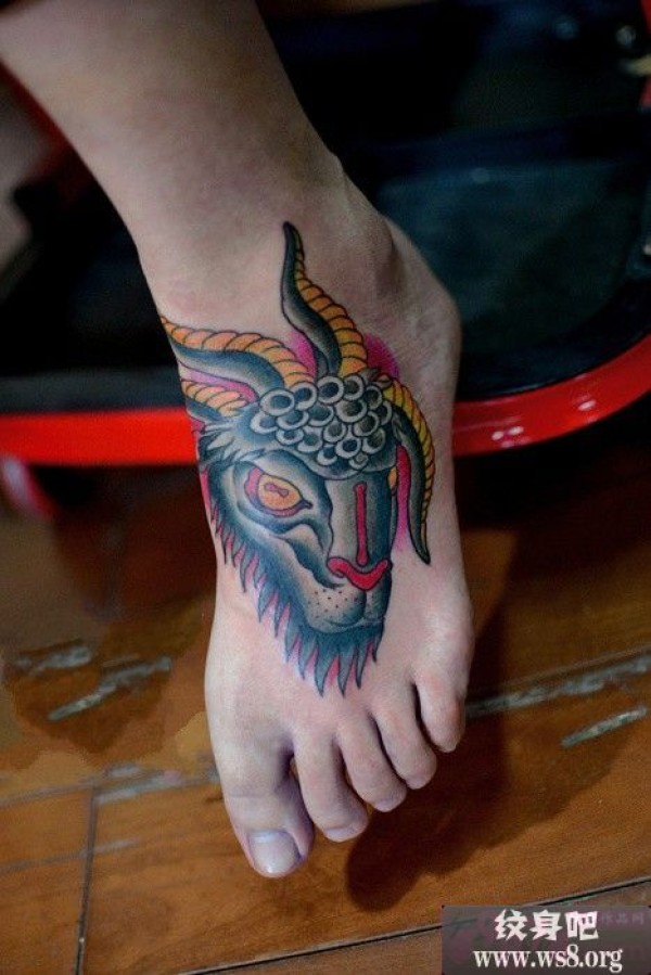 脚背霸气羊角头纹身图案_脚部纹身图案大全_纹身图吧