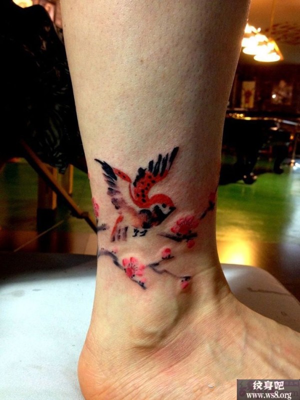 喜鹊梅花脚踝纹身图案图案_脚部纹身图案大全_纹身图吧