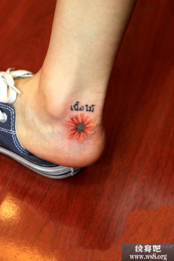 后脚跟美丽雏菊清新纹身图案_脚部纹身图案大全_纹身图吧