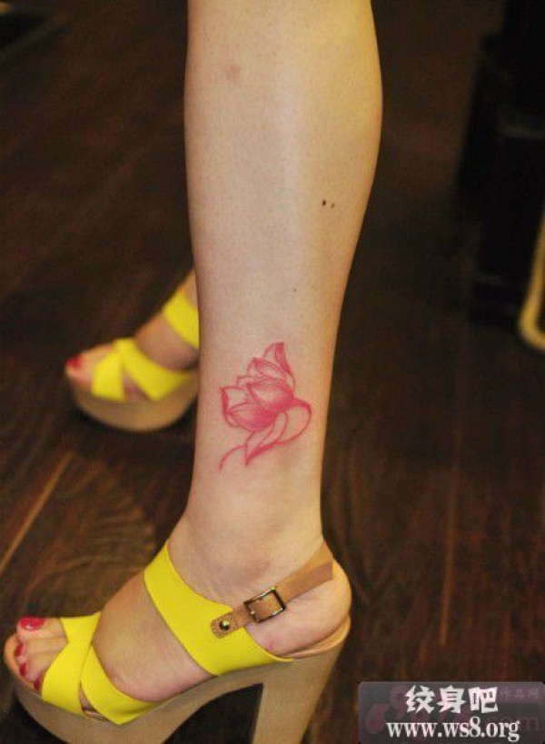 脚踝红色小莲花清新纹身图案_脚部纹身图案大全_纹身图吧
