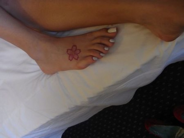 angelababy脚背粉色小樱花可爱刺青_脚部纹身图案大全_纹身图吧