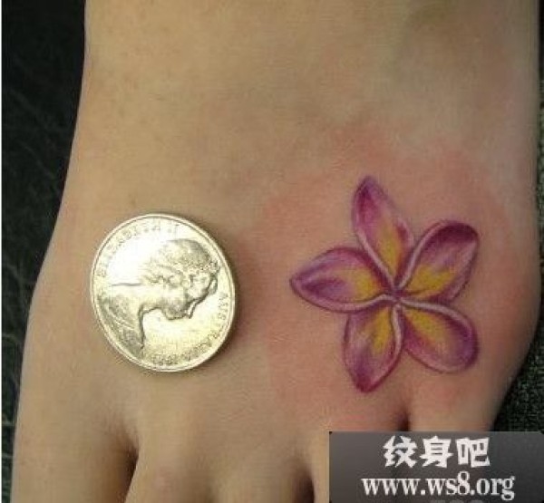 脚背硬币大小的素馨花纹身图案_脚部纹身图案大全_纹身图吧