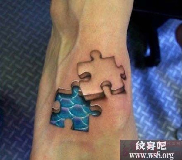脚背拼图纹身图案_脚部纹身图案大全_纹身图吧